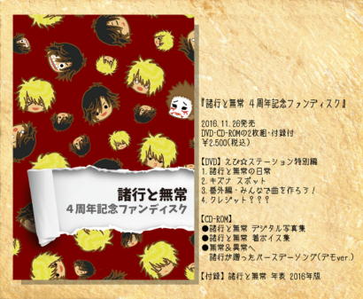 諸行 solo works ![]() 2017.12.24会場物販にて発売開始 通販での取り扱いは2018年1月上旬より予定しております。 ![]() 数量限定!無くなり次第終了です。お早めに! |